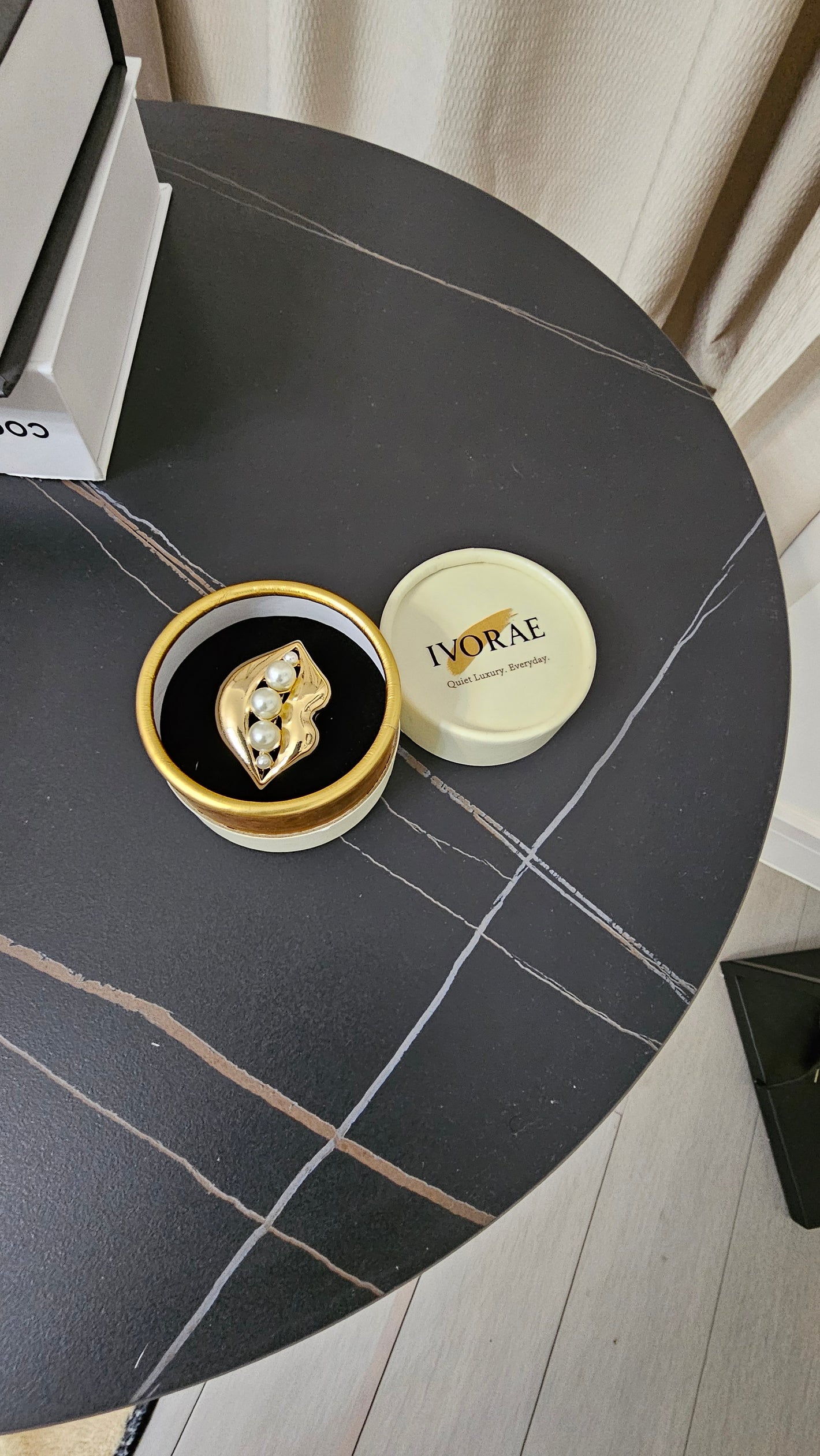 Each ring is presented in IVORAE’s signature ivory-and-gold round box — elegant, timeless, and perfect for gifting.